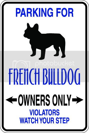 9"x12" Aluminum french bulldog dog owner funny parking sign for indoors or outdoors