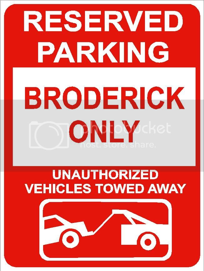 9"x12" BRODERICK ONLY RESERVED parking aluminum novelty sign great for indoor or outdoor long term use.
