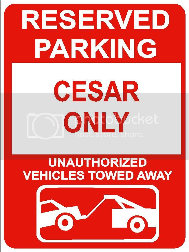 9"x12" CESAR ONLY RESERVED parking aluminum novelty sign great for indoor or outdoor long term use.