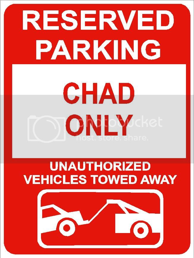 9"x12" CHAD ONLY RESERVED parking aluminum novelty sign great for indoor or outdoor long term use.