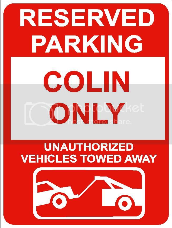 9"x12" COLIN ONLY RESERVED parking aluminum novelty sign great for indoor or outdoor long term use.