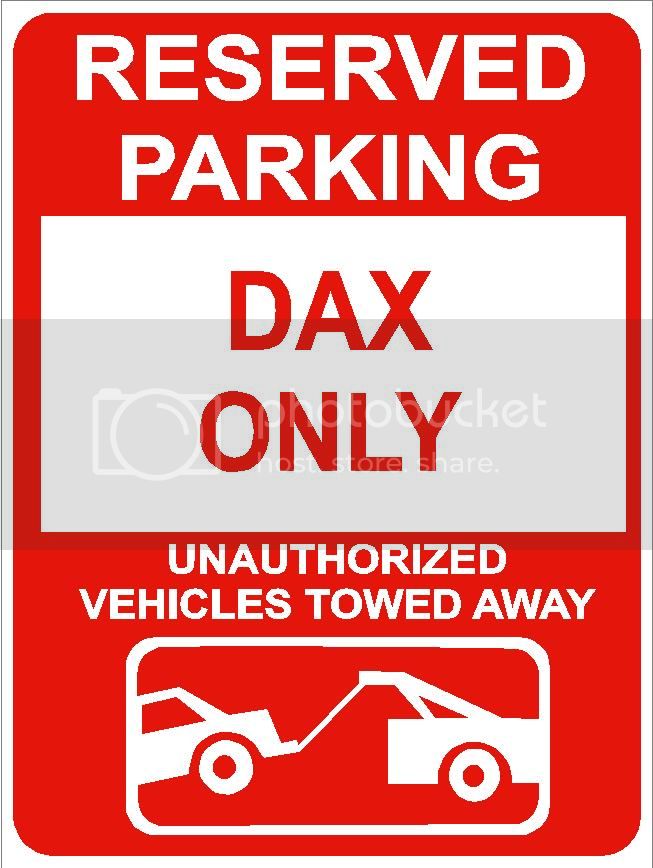 9"x12" DAX ONLY RESERVED parking aluminum novelty sign great for indoor or outdoor long term use.