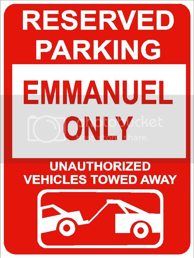 9"x12" EMMANUEL ONLY RESERVED parking aluminum novelty sign great for indoor or outdoor long term use.