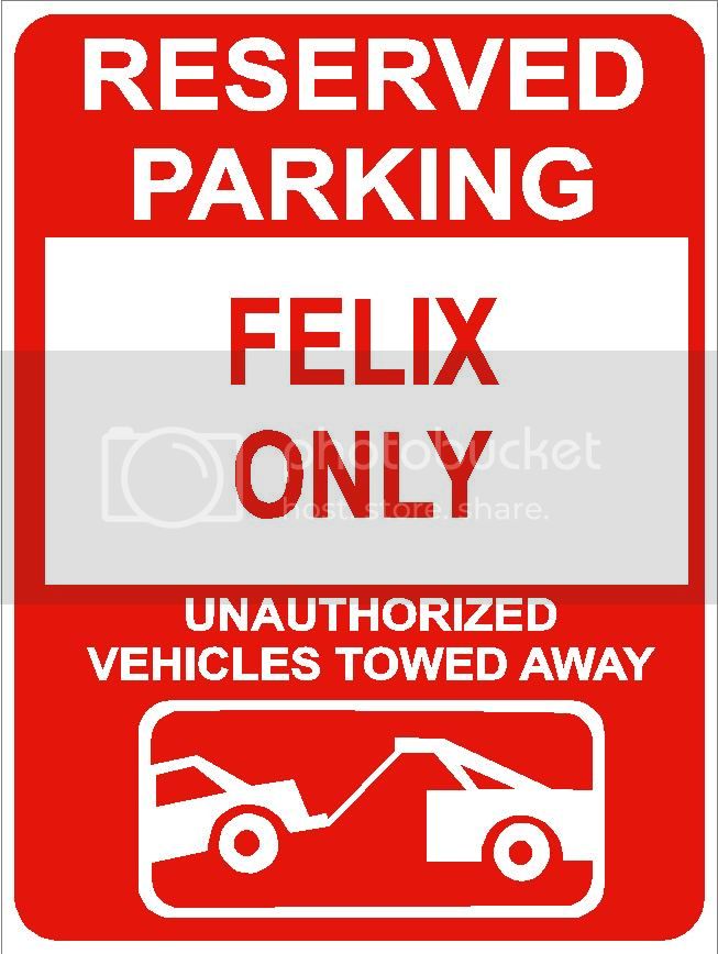 9"x12" FELIX ONLY RESERVED parking aluminum novelty sign great for indoor or outdoor long term use.