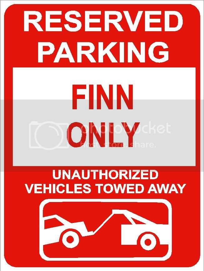 9"x12" FINN ONLY RESERVED parking aluminum novelty sign great for indoor or outdoor long term use.