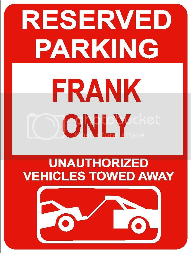 9"x12" FRANK ONLY RESERVED parking aluminum novelty sign great for indoor or outdoor long term use.