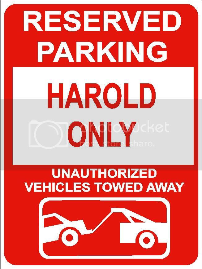 9"x12" HAROLD ONLY RESERVED parking aluminum novelty sign great for indoor or outdoor long term use.