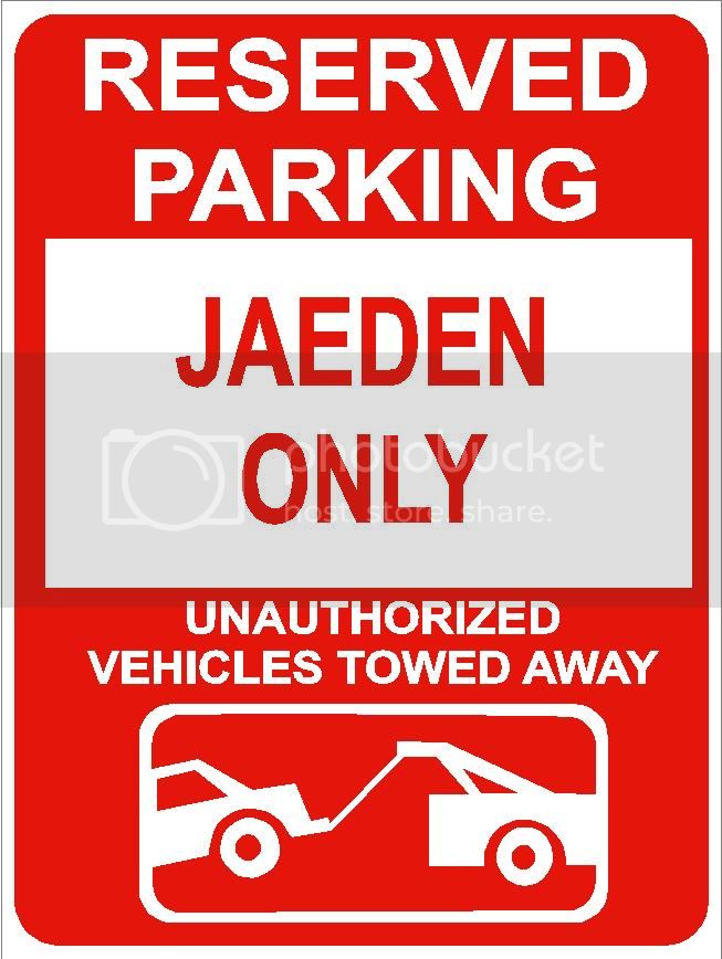 9"x12" JAEDEN ONLY RESERVED parking aluminum novelty sign great for indoor or outdoor long term use.
