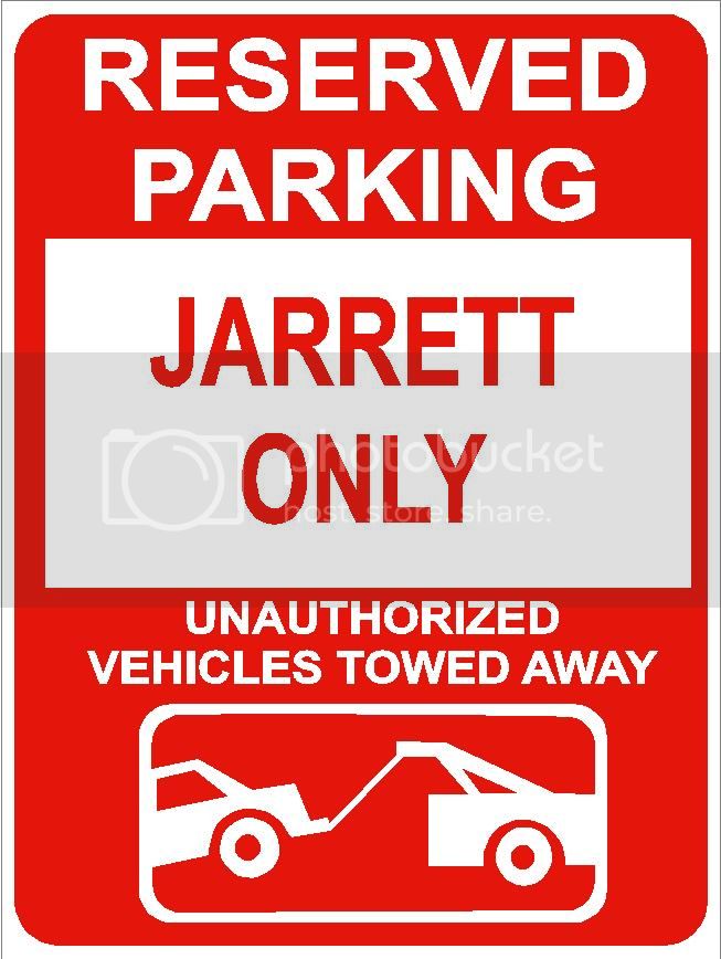 9"x12" JARRETT ONLY RESERVED parking aluminum novelty sign great for indoor or outdoor long term use.