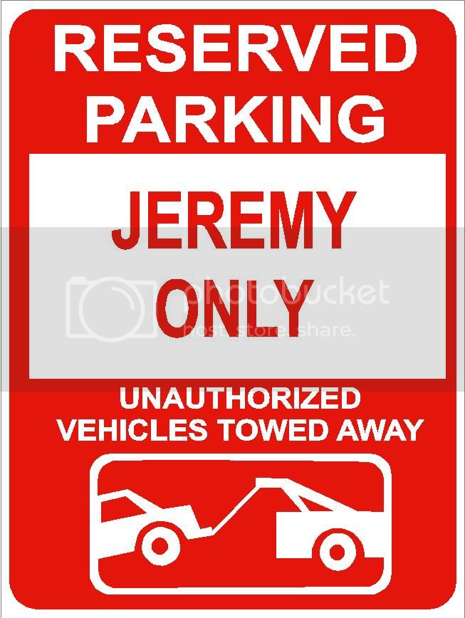 9"x12" JEREMY ONLY RESERVED parking aluminum novelty sign great for indoor or outdoor long term use.