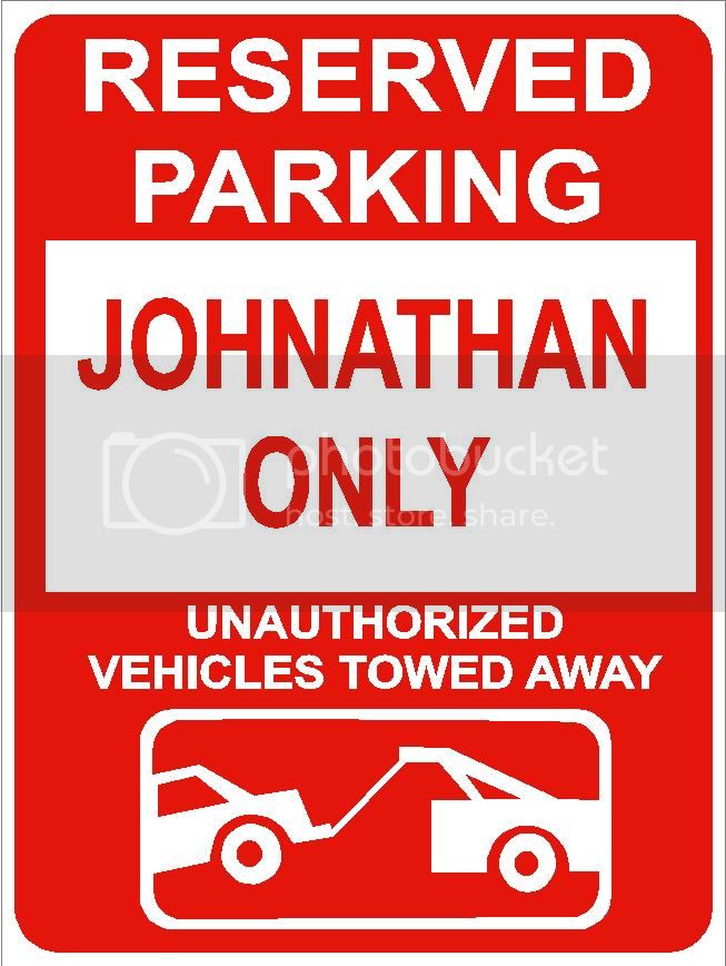 9"x12" JOHNATHAN ONLY RESERVED parking aluminum novelty sign great for indoor or outdoor long term use.