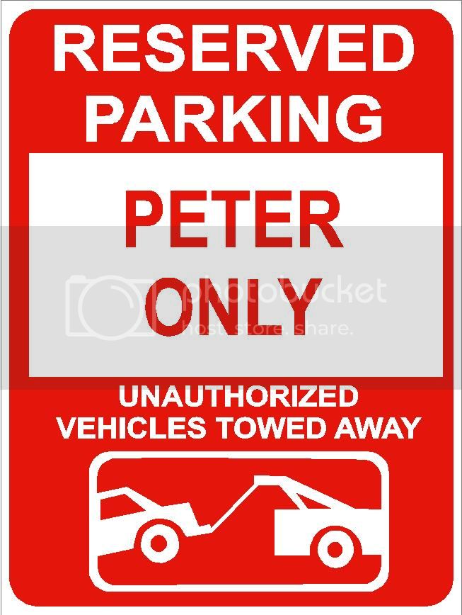9"x12" PETER ONLY RESERVED parking aluminum novelty sign great for indoor or outdoor long term use.