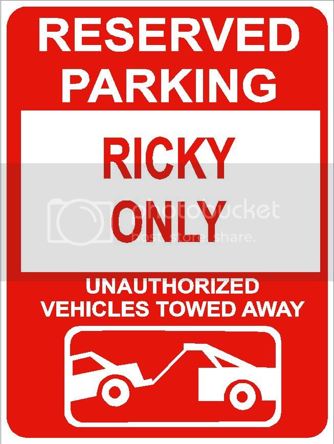 9"x12" RICKY ONLY RESERVED parking aluminum novelty sign great for indoor or outdoor long term use.