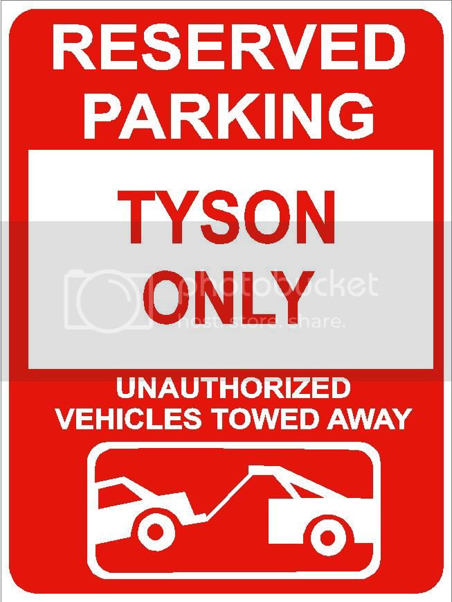 9"x12" TYSON ONLY RESERVED parking aluminum novelty sign great for indoor or outdoor long term use.