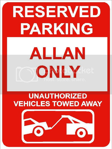 9"x12" ALLAN ONLY RESERVED parking aluminum novelty sign great for indoor or outdoor long term use.